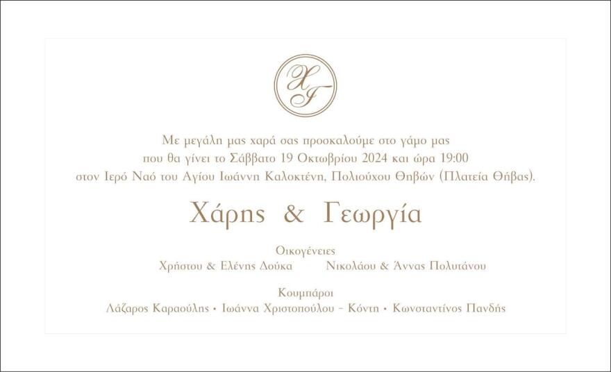 Όπως φαίνεται από το προσκλητήριο γάμου του ζευγαριού, η τελετή θα γίνει στη Θήβα, από όπου κατάγεται η μέλλουσα σύζυγος του Χάρη Δούκα.