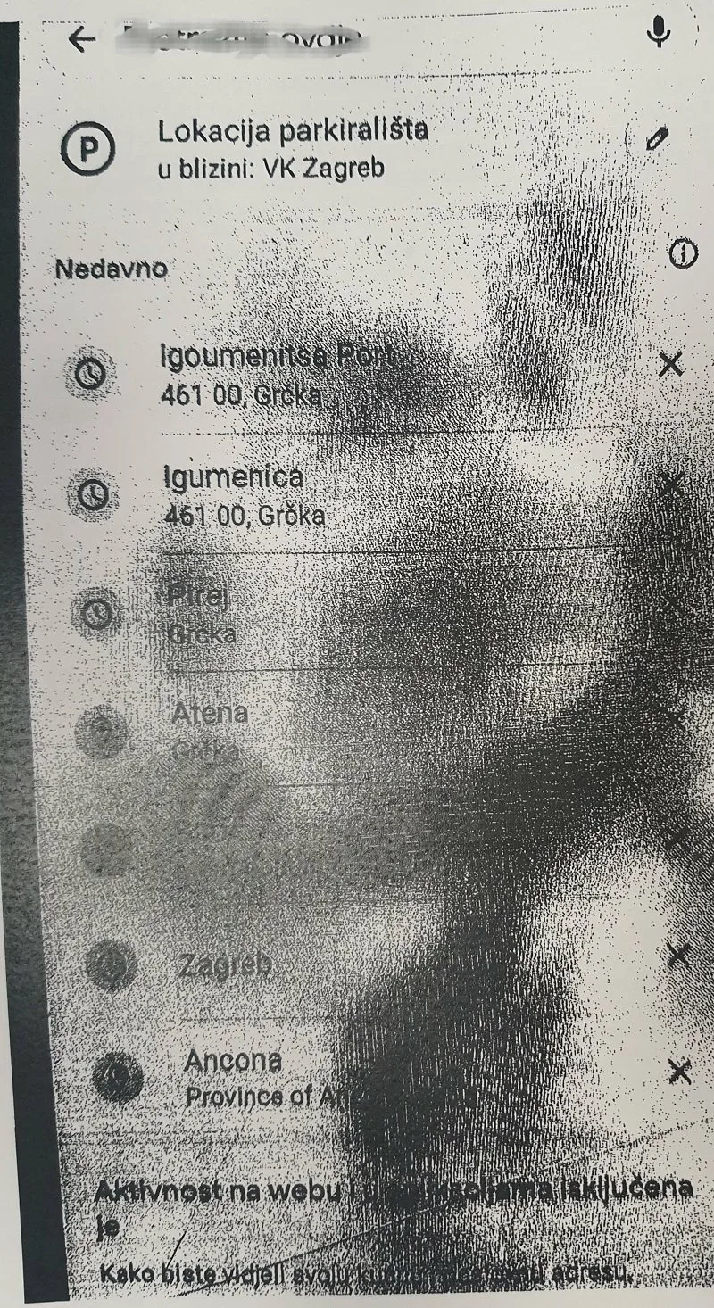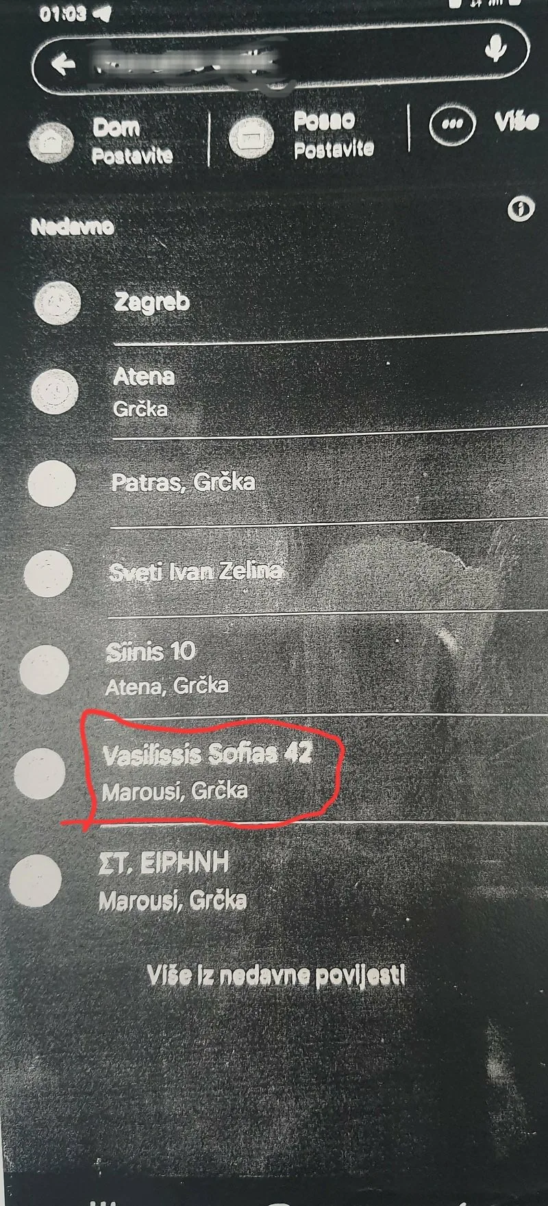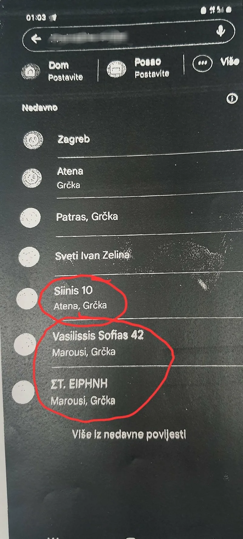 Παράλληλα, ντοκουμέντα από κινητά Κροατών, που φέρνει στο φως το iEidiseis, δείχνουν ότι σε εφαρμογή GPS που χρησιμοποίησαν, έβαλαν τη διεύθυνση Βασιλίσσης Σοφίας 42 στο Μαρούσι και το σταθμό Ειρήνης όπου συναντήθηκαν πριν τα επεισόδια. Μάλιστα, στα δεδομένα της εφαρμογής, φαίνεται ότι οι Κροάτες είχαν σχέδιο να διαφύγουν στην Ιταλία καθώς έψαχναν πάρκινγκ αυτοκινήτου στο Μπάρι και θα αναχωρούσαν από το Λιμάνι της Ηγουμενίτσας.