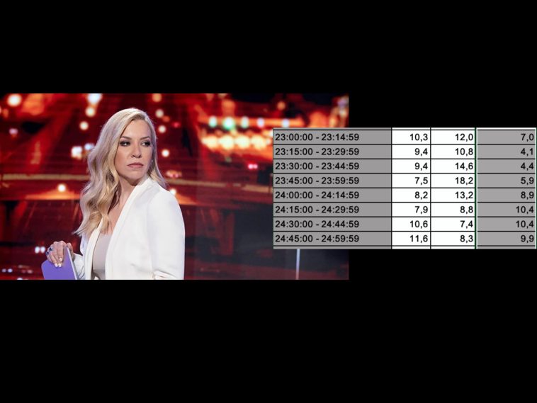 - Θυμίζουμε πως η πρεμιέρα είχε σημειώσει το τραγικό 4,6% με την ίδια να μην πιστεύει το πρωί της Πέμπτης στα νούμερα της. Ευτυχώς για εκείνη, τα δεδομένα στη δεύτερη εκπομπή ήταν οριακά καλύτερα καθώς έφερε ένα 7,6%, ανεβάζοντας τον μέσο όρο 3 ολόκληρες μονάδες.