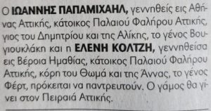 Να ζήσετε παιδιά με αγάπη…δείτε την αγγελία του γάμου τους.