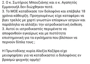 Μία περίεργη πτυχή της πορείας του ιατροδικαστή, Σωτήριου Μπουζιάνη, φέρνει στο φως της δημοσιότητας ο γνωστός δικηγόρος, Γιάννης Απατσίδης.