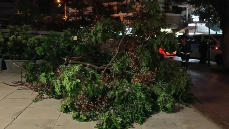 Ένα από αυτά τα συμβάντα καταγράφηκε στη λεωφόρο Ειρήνης στην Ηλιούπολη, με ένα δέντρο να πέφτει και να προκαλεί φθορές σε ένα όχημα (ταξί) αλλά και σε καλώδια της ΔΕΗ.
