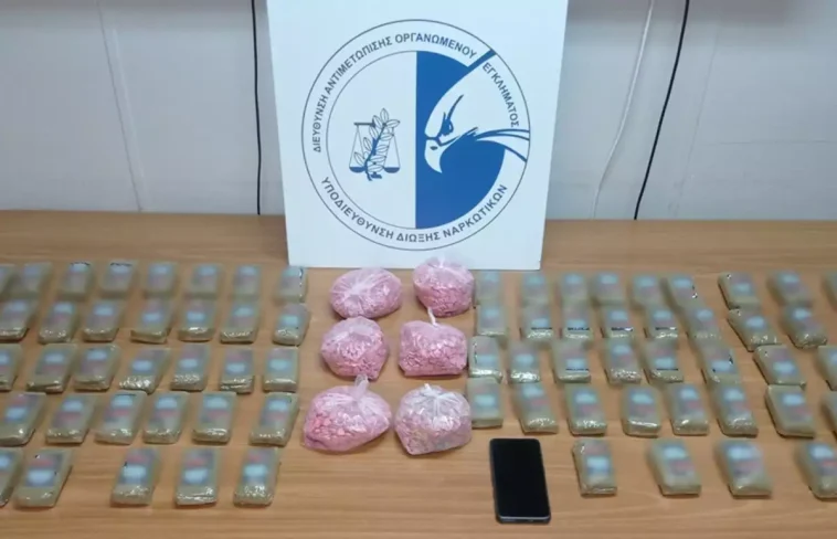 Κατά τον έλεγχο που έκανε η Υποδιεύθυνση Δίωξης Ναρκωτικών, βρήκε κρυμμένα μέσα στα ρούχα και τα παπούτσια που είχε στην βαλίτσα του, σοκολάτα με κατεργασμένη κάνναβη βάρους 7 κιλών και 840 γραμμαρίων καθώς και 4.770 περίπου δισκία «ECSTASY».