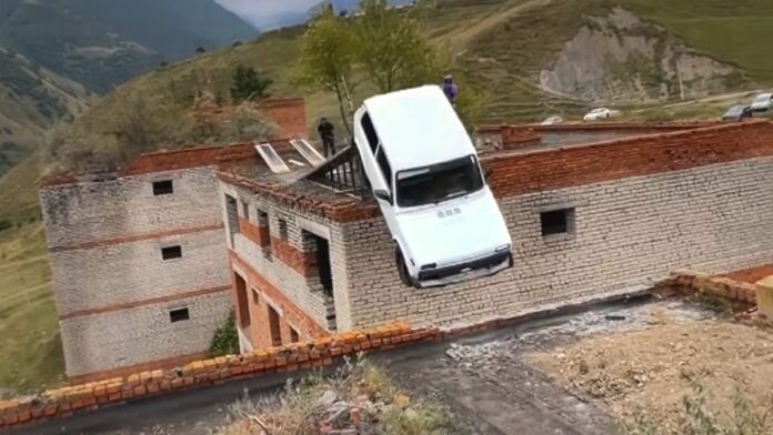 - Σύμφωνα με την Daily Mail, ο Γεβγκένι Τσεμποτάρεβ προσπάθησε να πραγματοποιήσει το επικίνδυνο άλμα στη δημοκρατία της Βόρειας Οσετίας – Αλανίας, που είναι ομοσπονδιακό υποκείμενο της Ρωσίας.Αφού πήρε θέση μέσα στο λευκό Lada Niva του, έβαλε μπρος και επιχείρησε να ανέβει με μεγάλη ταχύτητα μια ράμπα και να πηδήξει στο διπλανό, χαμηλότερο κτίριο. Ωστόσο ο παράτολμος άνδρας δεν κατάφερε να επιταχύνει όσο έπρεπε και το αυτοκίνητο συγκρούστηκε στον απέναντι τοίχο και έπεσε στο κενό.