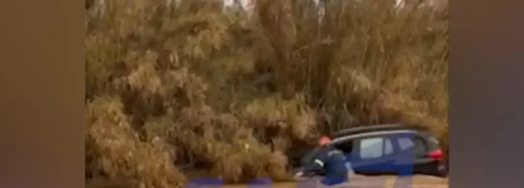 Στις εικόνες που δημοσιοποίησε ο ΑΝΤ1, φαίνονται διασώστες να προσπαθούν με ένα σχοινί, να τραβήξουν με ασφάλεια τους ανθρώπους έξω από το πλημμυρισμένο αυτοκίνητο.