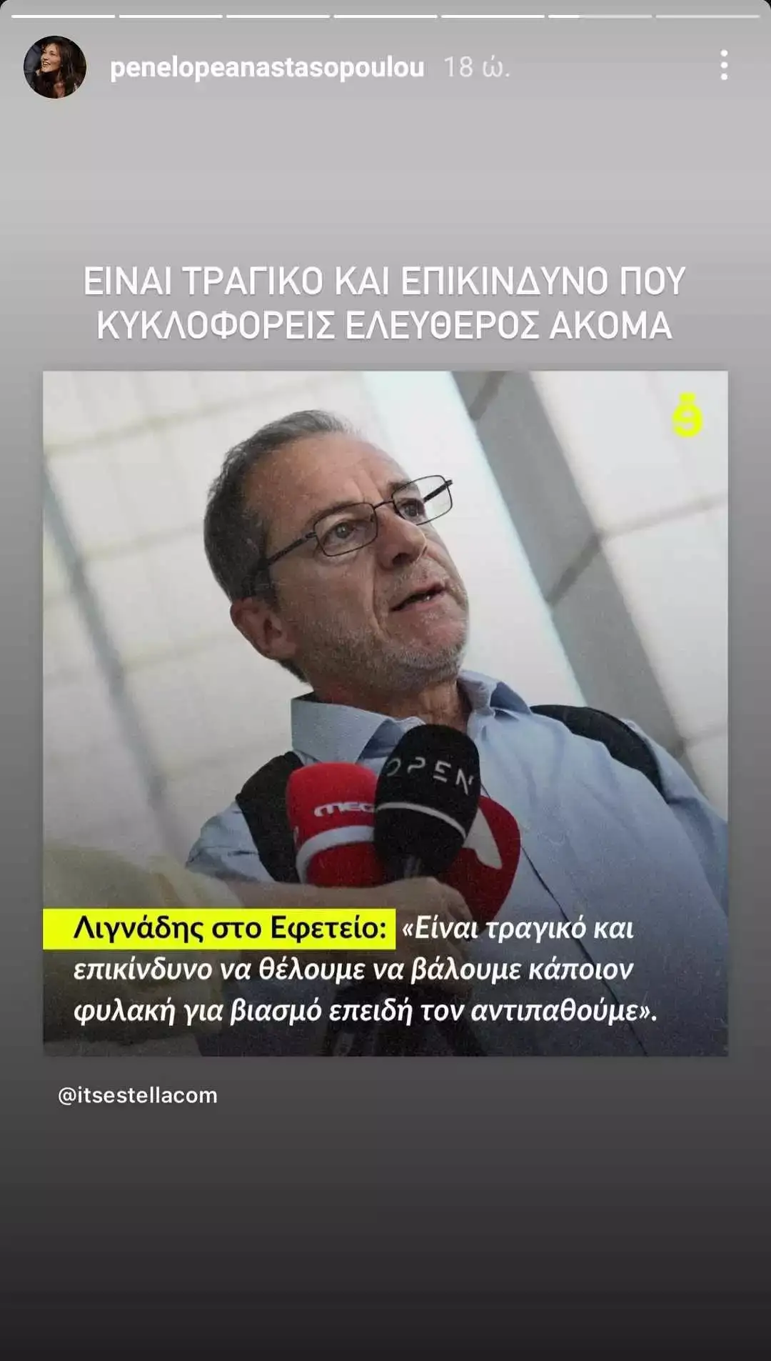 «Είναι τραγικό και επικίνδυνο που κυκλοφορείς ελεύθερος ακόμα» έγραψε η Πηνελόπη Αναστασοπούλου για τον Δημήτρη Λιγνάδη.