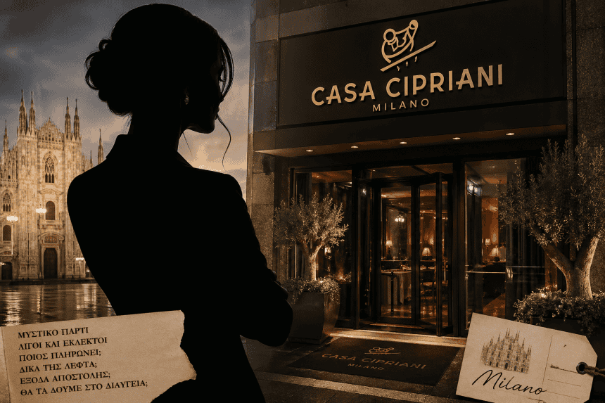 Δεν γίνεται να το πεις αλλιώς: όταν μια «κυρία» της κυβέρνησης ετοιμάζει κλειστό πάρτι στο Casa Cipriani Milano, το θέμα δεν είναι μόνο κοσμικό. Είναι και πολιτικό. Οι πληροφορίες μιλούν για ένα Σαββατοκύριακο με λίγους και εκλεκτούς, σε ένα από τα πιο exclusive spots του Μιλάνου. Όλα ωραία μέχρι εδώ. Γιατί από εκεί και πέρα ξεκινούν τα ερωτήματα.