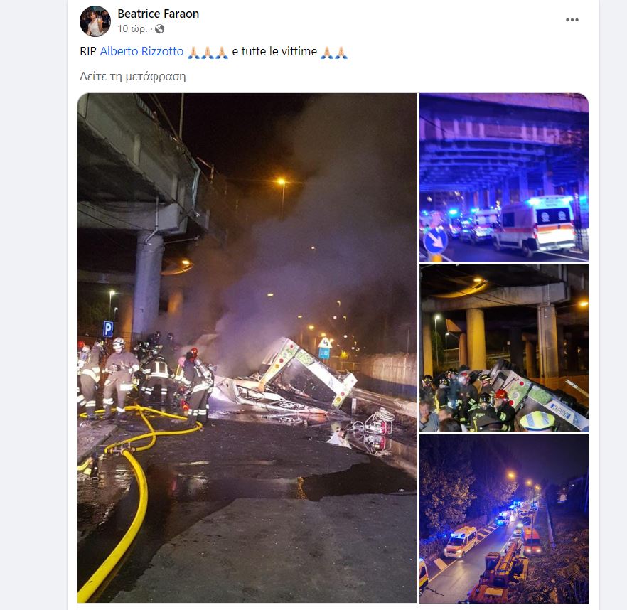 Ο Aλμπέρτο Ριτσότο, ένας 40χρονος από το Tρεβίζο είναι ο άνθρωπος που βρισκόταν πίσω από το τιμόνι του μοιραιου λεωφορείου. Λίγο πριν από τη συντριβή, ο οδηγός είχε δημοσιεύσει μια ανάρτηση στο Facebook, όπου βρισκόταν στο κάμπινγκ Hu της Μαργκέρα γράφωντας «Καθ’οδόν προς τη Βενετία». Μετά τη διάδοση της είδησης της τραγωδίας, πολλοί φίλοι και γνωστοί του έγραψαν στο χρονολόγιό του, χωρίς να λάβουν άλλη απάντηση.Ο Ριτσότο, εργαζόταν στην εταιρεία La Linea τα τελευταία πέντε-έξι χρόνια. Ο διευθύνων σύμβουλος της εταιρείας La Linea, Μάσιμο Φιορέζε στην οποία ανήκε το ηλεκτρικό λεωφορείο που συνετρίβη μετά τις 8 το βράδυ από την υπερυψωμένη διάβαση Mestre (Βενετία) σκοτώνοντας 21 άτομα, καταστρέφεται είπε οτι το «όχημα ήταν καινούριο και ο οδηγός καλός»