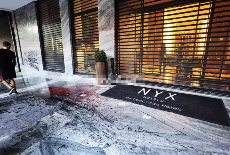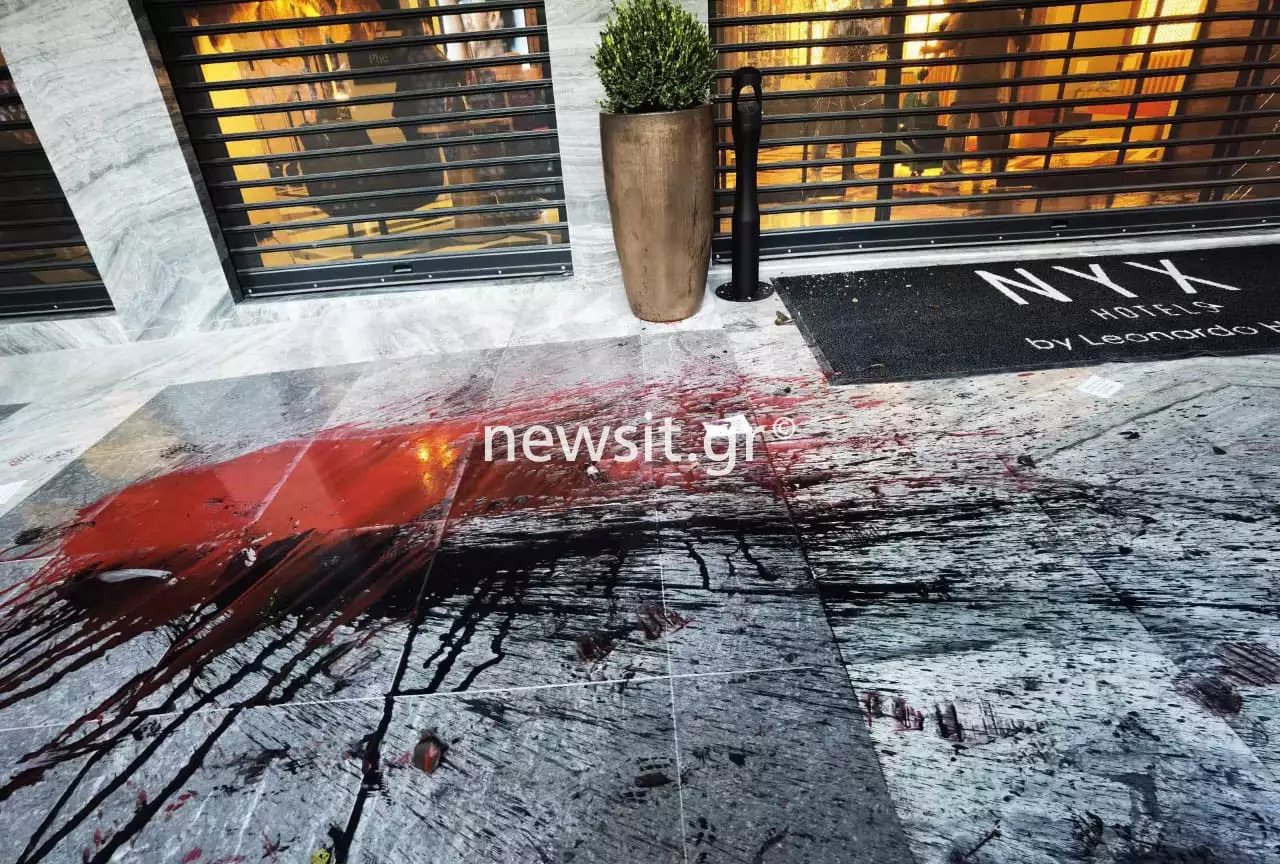 Τα άτομα έσπασαν μία τζαμαρία επιχείρησης στην οδό Σταδίου και έριξαν μπογιές έξω από ξενοδοχείο. Μέσα, όπως βλέπετε στις εικόνες του newsit.gr είναι άνθρωποι που παρακολουθούν τα όσα διαδραματίζονται, πίσω από τα ρολά…