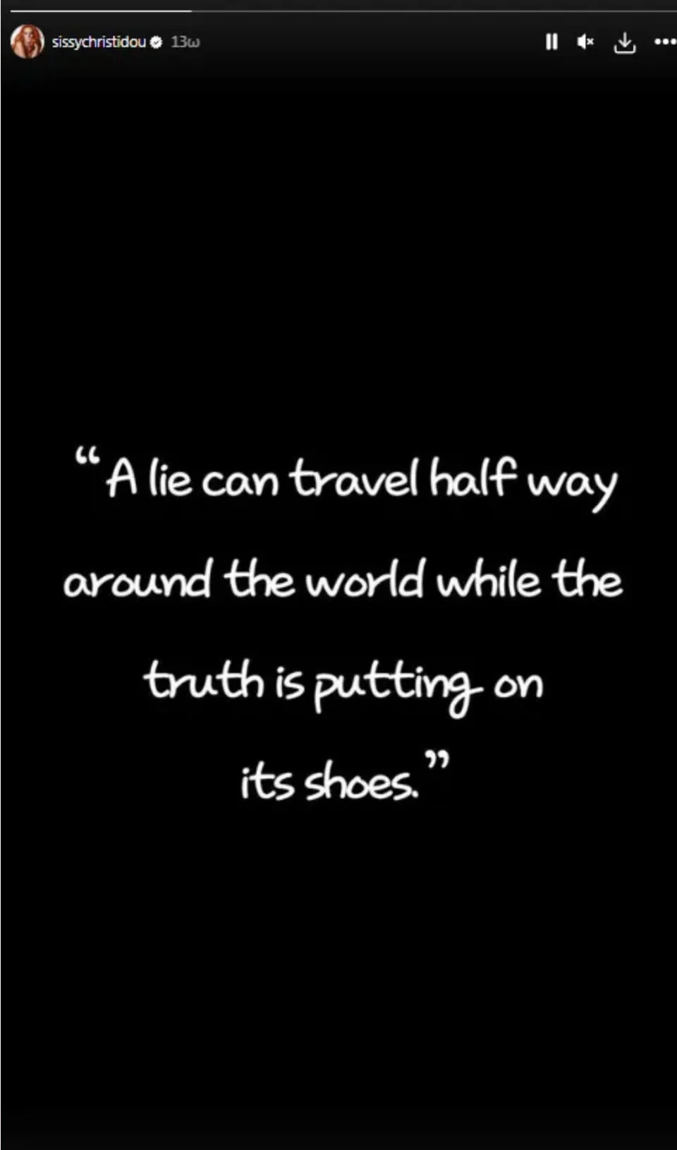 - Η Σταματίνα Τσιμτσιλή από την πλευρά της ζήτησε σήμερα συγγνώμη στον Γιάννη Στάνκογλου, λέγοντας ότι δεν φανταζόταν ότι θα πάρει τόση έκταση το θέμα.«Ένα ψέμα μπορεί να κάνει τον μισό γύρο του κόσμου μέχρι η αλήθεια να φορέσει τα παπούτσια της».Στην εκπομπή «Super Κατερίνα», ο Γρηγόρης Γκουντάρας, ο οποίος επικοινώνησε με τον ηθοποιό, ανέφερε τα εξής: «Εγώ το πρωί μίλησα με τον Γιάννη Στάνκογλου και άκουσα έναν οργισμένο πατέρα γιατί τίποτα από αυτά που γράφονται δεν ισχύει και γιατί έχει δύο παιδάκια που αντιλαμβάνονται τα πάντα. Ο Γιάννης Στάνκογλου ντρέπεται γι’ αυτό το δημοσίευμα. Με τη Σίσσυ Χρηστίδου έχουν συναντηθεί μία φορά στο θέατρο και μία στην εκπομπή».