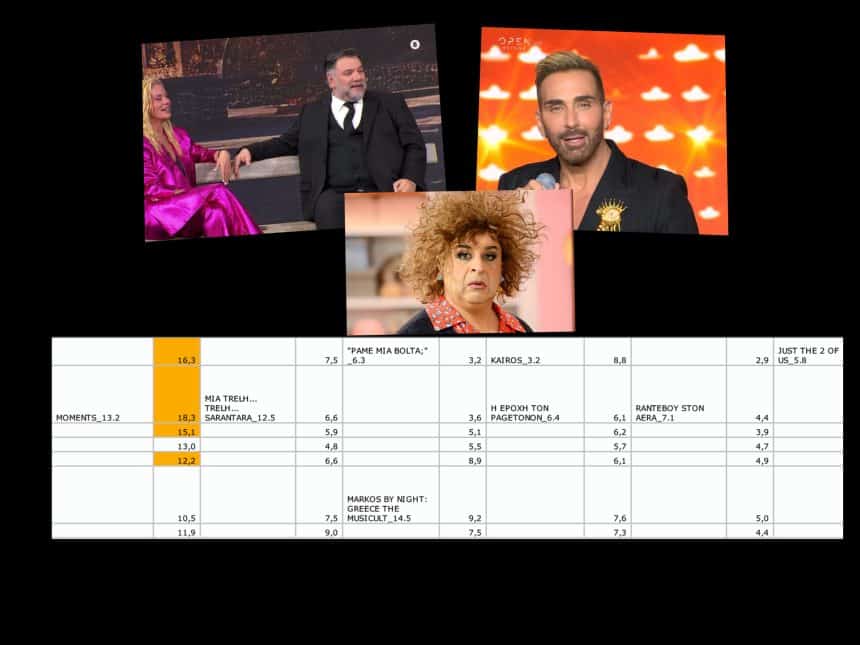 “Φωνή βοώντος εν τη ερήμω”. Ο Γρηγόρης έδωσε το παρών χθές στην εκπομπή της Μακρυπούλια και για πρώτη φορά η εκπομπή ξεπέρασε το διψήφιο και μάλιστα έφτασε ένα βήμα πρίν κατακτήσει την κορυφή με τον Μάρκο Σεφερλή να την κατακτά οριακά και με μια μόλις μονάδα διαφορά. Αν κανείς το δεί επενδυτικά… τότε το Mega είναι πρώτο με δοαφορά καθώς μια επανάληψη κέρδισε την μάχη απέναντι σε δυο πολύ ακριβές παραγωγές όπως είναι το Memories και το “Just”. Ένα “Just” και ένας Κοκλώνης που δεν επέστρεψε ποτέ απο τις διακοπές του Πάσχα και έφερε στο Open το φτωχό 5,8%. Σε μια κακή συνολικά ημέρα για το Open που “κατάφερε” να δει διψήφιες αποδόσεις μόνο στο “Just” λίγο μετά τις 00.30.