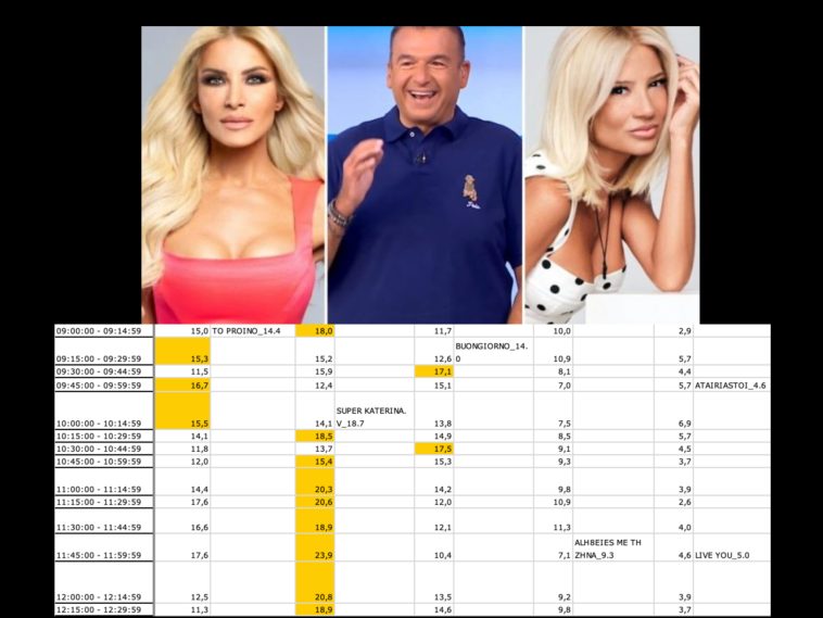 - Η εκπομπή ωστόσο ώς εκπομπή… όπως τα γράψαμε και απο χθές ήταν ρηχή και φτωχή. Στην δεύτερη θέση ο Λιάγκας με 14,4% ενώ στην τρίτη πλασαρίστηκε η Σκορδά με 14%.