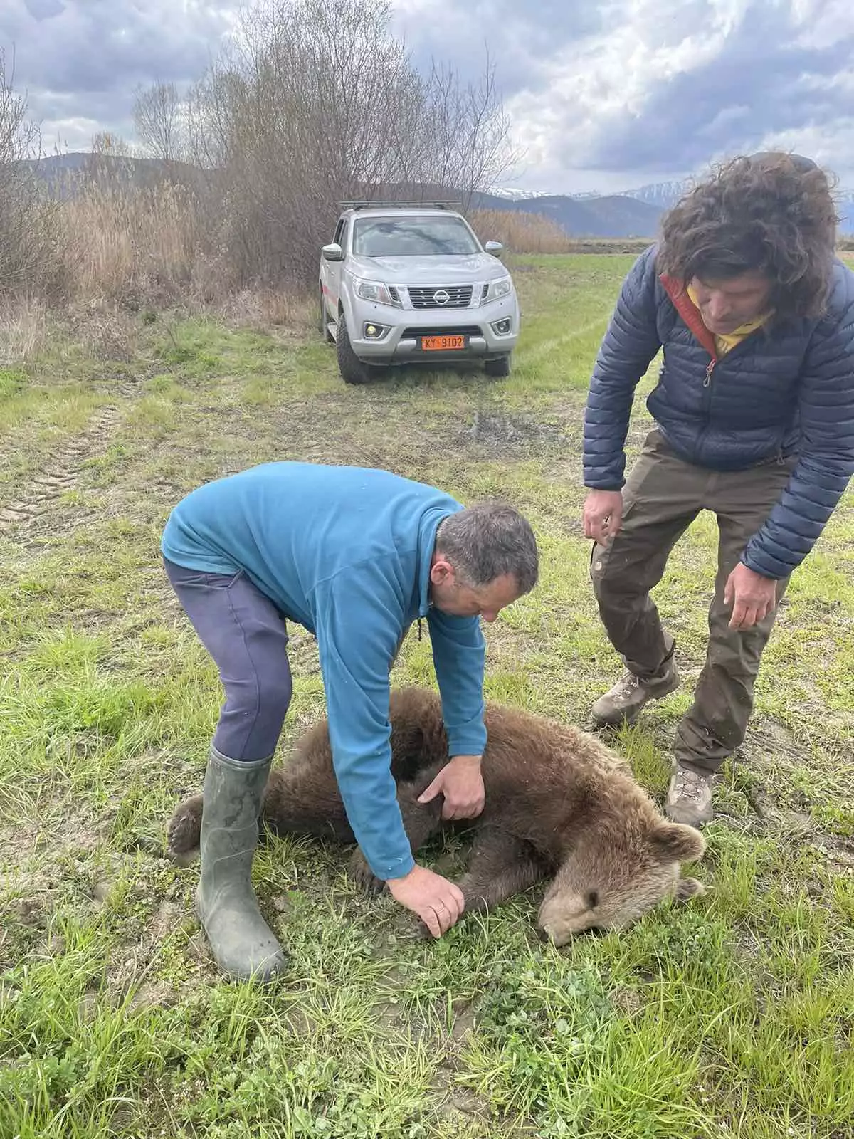 Πρόκειται για μια αρκούδα 1,5- 2 ετών και βάρους 45 κιλών η οποία απεγκλωβίστηκε με επιτυχία από παγίδα (συρμάτινη θηλιά) κοντά σε ένα χωράφι στην περιοχή «Σλάτινα» στο χωριό Λαιμός του Δήμου Πρεσπών.
