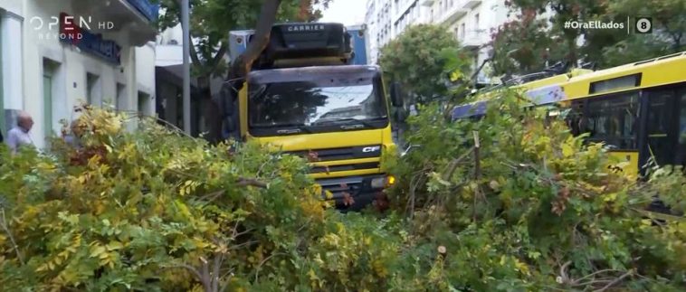 Πρίν απο λίγο – Φορτηγό ξερίζωσε δέντρο στην Πατησίων (Βίντεο)