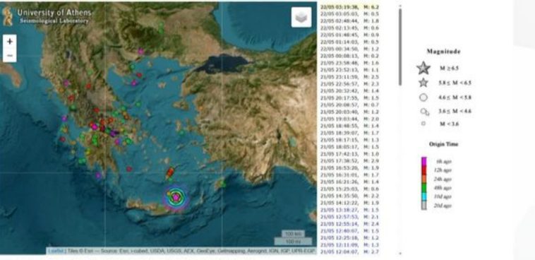 Ισχυρός σεισμός 6,2 Ρίχτερ στην Κρήτη – Αισθητός και στην Αθήνα. Σύμφωνα με την αναθεωρημένη λύση του Εθνικού Αστεροσκοπείου Αθηνών το εστιακό βάθος του σεισμού ήταν 60,3 χλμ. Ο σεισμός σημειώθηκε στις 06:19 το πρωί της Πέμπτης.