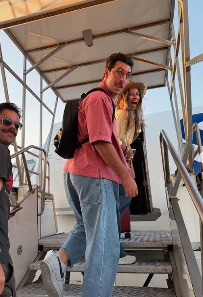 Δείτε το ζευγάρι μέσα στην καλή χαρά πριν μπεί στο αεροπλάνο.