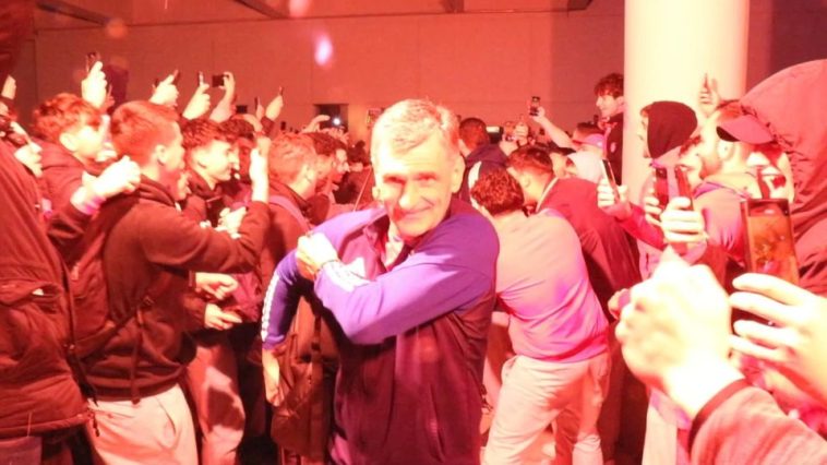 Παρότι ξημερώματα το αεροδρόμιο Ελευθέριος Βενιζέλος περικυκλώθηκε απο χιλιάδες φιλάθλους του Ολυμπιακού που υποδέχτηκαν την ομάδα τους με τιμές μετά την μεγάλη νίκη επί της Μακάμπι με 6-1 στο Βελιγράδι.