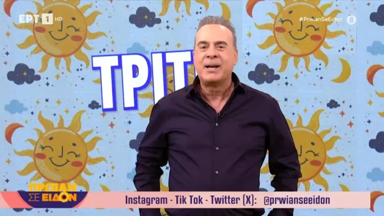 Την πρώτη καλημέρα στους τηλεθεατές της ΕΡΤ είπε το πρωί της Τρίτης (10/2) ο Φώτης Σεργουλόπουλος. Ο παρουσιαστής και ηθοποιός έκανε μόνος του την έναρξη στο “Πρωίαν σε Είδον”, αφού -όπως έσπευσε να ενημερώσει το κοινό- η Τζένη Μελιτά αντιμετωπίζει μία ίωση που την κρατά σήμερα μακριά από τις επαγγελματικές της υποχρεώσεις.