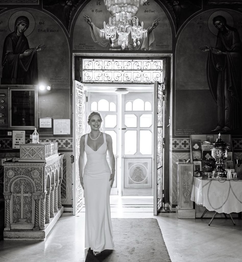 Εντυπωσιακή μέσα στο λευκό μακρύ φόρεμα της, με πλατύ χαμόγελο που δηλώνει την ευτυχία της και με ένα ντεκολτέ που…βγάζει μάτι, η γοητευτική ηθοποιός ανέβηκε τα σκαλιά της εκκλησίας!