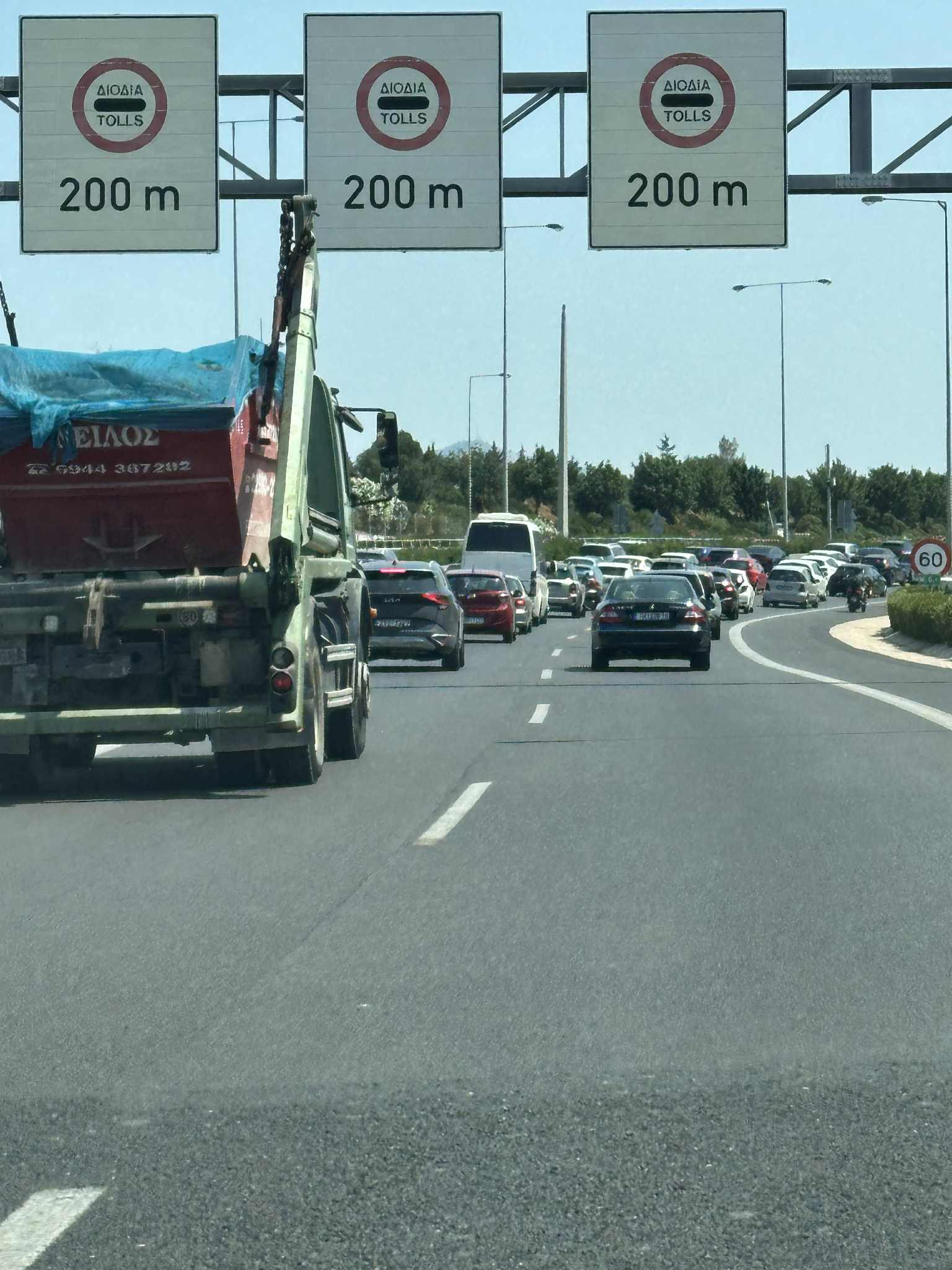 - Ενδεικτική είναι η εικόνα από την Αττική Οδό, στο ύψος της Καισαριανής, όπου οι ουρές ξεπερνούν τα 200 μέτρα.