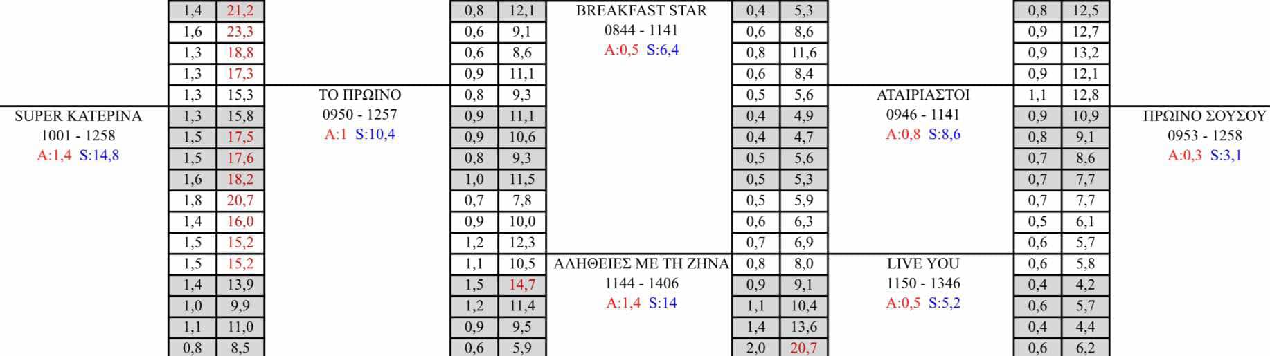- Πάμε τώρα στην χθεσινή ημέρα. Η Καινούργιου μετά απο πολλές ημέρες ανέβηκε στην πρώτη θέση με την Σκορδά να πλασάρεται στην δεύτερη θέση και τους άλλους… να πέφτουν πολύ.