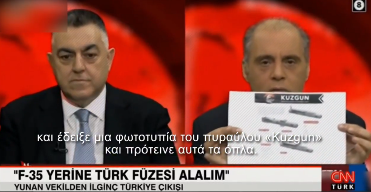 «Ύμνοι» των Τούρκων για τον Κυριάκο Βελόπουλο της «Ελληνικής Λύσης». Πρώτο θέμα στο CNN TURK η πρόταση του για την αγορά αντί 4 δισ. δολαρίων από τη χώρα μας 30.000 τουρκικών πυραύλων Guzgun («Κοράκι») αντί των αμερικανικών αεροσκαφών F-35.