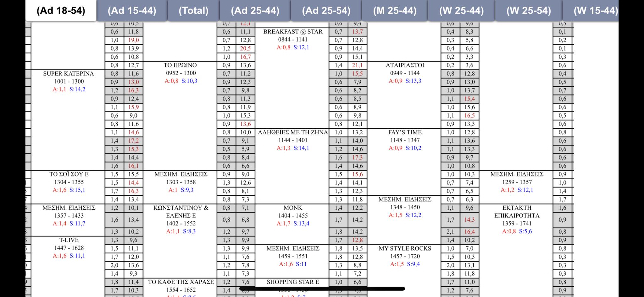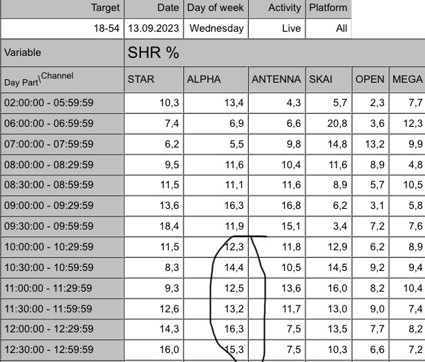 πρεπει να μπουν και οι παικτες του οπεν στο παιχνιδι για να δουμε. και εννοω σε ολες τις ζωνες οχι μονο τη πρωινη. μολις μπουνε τσολακη ζαριφη και πανια στο καθημερινο τοτε θα συμπληρωθει το παζλ κ θα δουμε τι θα κανει ο καθενας. επιμενω πως η 3αδα στα πρωινα θα ειναι καινουργιου-λιαγκας-τσολακη. ολοι οι αλλοι κατω απο 10%