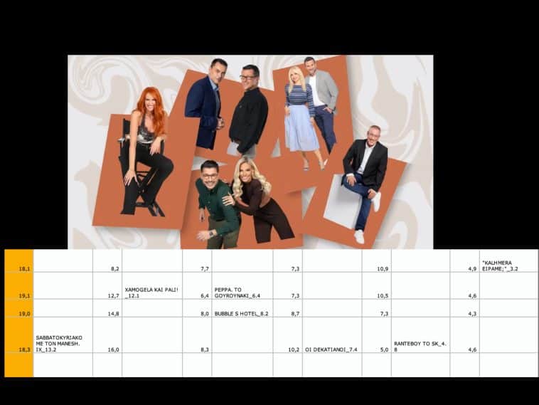 Στην μάχη των τελευταίων έχουμε άνοδο της ΕΡΤ και οριακό προσπέρασμα απο το Open. Κοινώς η απουσία της Τσολάκη δεν ευνόησε κανέναν… όπως και σας γράψει απο την αρχή.