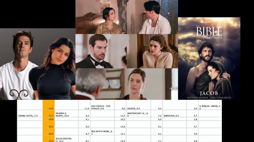 - Όπως όλα δείχνουν η απόφαση της Διοίκησης του καναλιού της Παιανίας να βάλει εκεί ταινίες απο το πάνω ράφι… άλλαξε την τάση. Και απο 2% έχει φτάσει να κάνει μέχρι και 5%. Μάλιστα αυτές τις ημέρες λόγω του κλίματος η επιλογή της σειράς “Βίβλος-Ιακώβ” έφερε χθές 4,7%. Μια σειρά που ακουμπά το θυμικό του κοινού και δεν στοιχίζει πολλά.