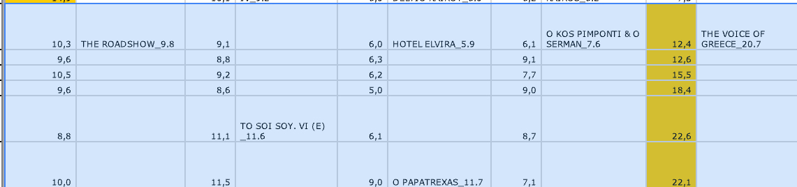 - Ευτυχώς για το κανάλι του Φαλήρου… εξαιρώ το RoadShow του Αρναούτογλου που άγγιξε χθές το 10%… δεν υπάρχει απέναντι του κάτι αντίστοιχα δυνατό… να το “απειλήσει”.