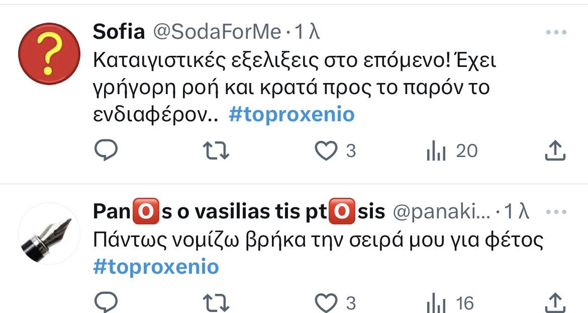Μόλις τρία επεισόδια έπαιξαν στις οθόνες μας και οι εξελίξεις στο “Προξενείο της Ιουλίας” τρέχουν με μεγάλη ταχύτητα. Γι’ αυτό και οι τηλεθεατές δεν βαριούνται και αποθεώνουν την σειρά. Με το που ξεκίνησε χθες το επεισόδιο, η Ιουλία δέχεται σφαίρα από το όπλο του αδερφού της κατά λάθος, ωστόσο την γλιτώνει καθώς την πήρε ξόφαλτσα στο χέρι. Και στο τρέιλερ για το επεισόδιο της Τετάρτης, η Ιουλία κρεμιέται με σκοινί στο δωμάτιό της και προσπαθεί να αυτοκτονήσει. τι άλλο θα δούμε;