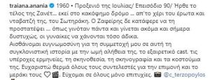 - Η Τραιάνα Ανανία είχε κακό τέλος στη σειρά και η ίδια αποχαιρετά με ένα κείμενο την Ζανετ: