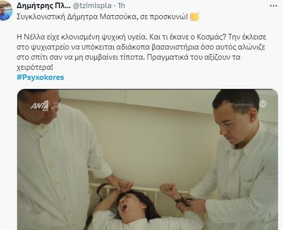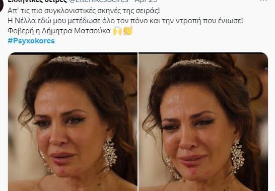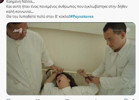 - Η στιγμή που την βάζουν στο ψυχιατρείο σοκαριστική με την Ματσούκα να δίνει ρεσιτάλ ερμηνείας «Ο καλύτερος ρόλος της Ματσούκας :σε κάνει να τη λυπάσαι, να τη φοβάσαι, να τη μισείς, να την νοιάζεσαι, να της δίνεις δίκιο και να τις στέλνεις κατάρες. Όλα αυτά μαζί» «Συγκλονιστική η Ματσούκα» γράφουν.