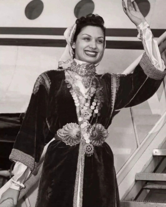 “1954. H Ρίκα Διαλύνα με εθνική ενδυμασία δώρο από την Σοφία Βέμπο προκειμένου να συμματάσχει στον διαγωνισμό της Μις Υφήλιος…”, γράφει στη λεζάντα της φωτογραφίας.