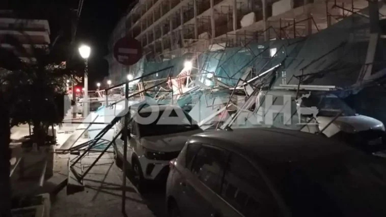 Οι σκαλωσιές που υπήρχαν σε υπό ανακαίνιση ξενοδοχειακό συγκρότημα μετακινήθηκαν αρκετά μέτρα και έπεσαν πάνω στα αυτοκίνητα που ήταν παρκαρισμένα από κάτω στο κέντρο της πόλης της Ρόδου.