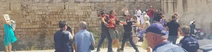 Σε σκηνικό αυξημένης έντασης μετατράπηκε για λίγη ώρα τη Δευτέρα (28.07.2025) το λιμάνι στη Ρόδο. Αφορμή η άφιξη κρουαζιερόπλοιου στο οποίο επιβαίνουν περισσότεροι από 650 Ισραηλινοί τουρίστες.