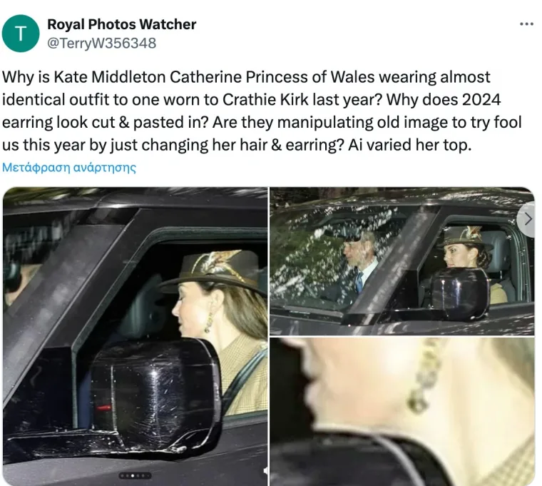 Νέος σάλος ξέσπασε γύρω από την πρόσφατη εμφάνιση της Κέιτ Μίντλετον, με τους χρήστες στο X να ισχυρίζονται ότι οι φωτογραφίες που κυκλοφόρησαν δεν είναι φετινές αλλά περσινές.