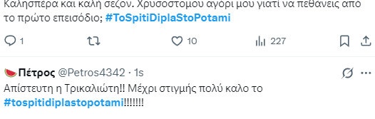 Η πρεμιέρα της νέας δραματικής σειράς του Alpha, «Το Σπίτι δίπλα στο ποτάμι», προβλήθηκε το βράδυ της Δευτέρας 22-09 και το Twitter πήρε φωτιά!