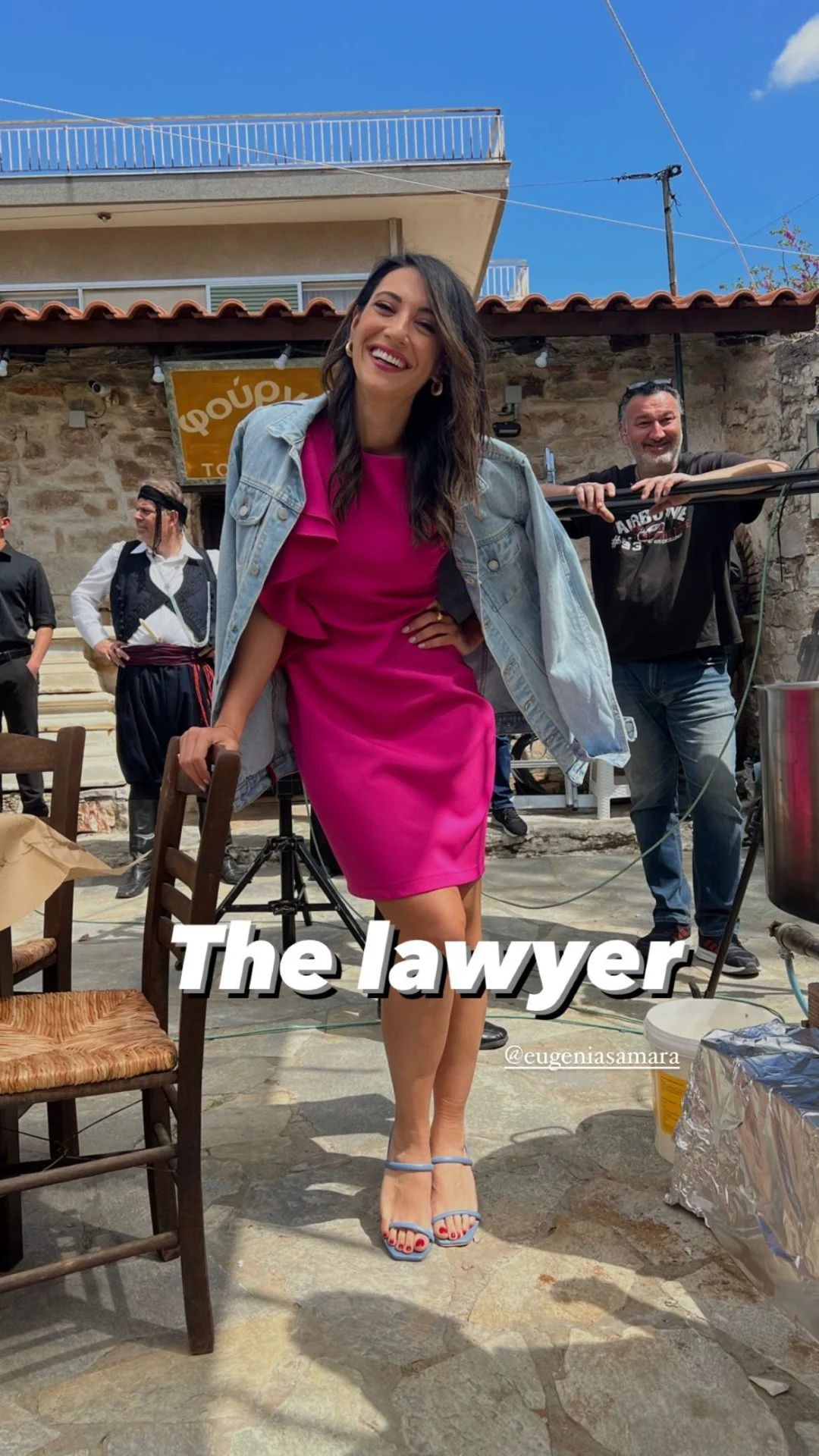 Η Σάντυ Χατζηιωάννουπόσταε φωτογραφίας από τα γυρίσματα της σειράς «Σασμός».