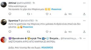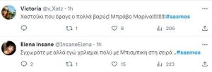 «Να αγιάσει το χέρι σου Μαρίνα» «Επικό χαστούκι αύριο, Αυτό δεν χάνεται» γράφουν ενώ άλλοι κάνουν έκκληση και στη Βανδή «Πάρτε τη Βανδή τώρα. Αυτός θα χαλάσει τον Σασμό». Διαβάστε παρακάτω:
