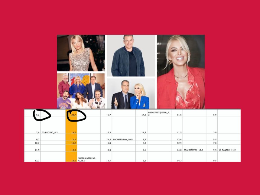 Για μια ακόμη ημέρα ο Γιώργος Λιάγκας και η εκπομπή του τερμάτισαν χθές στην τελευταία θέση. Με πολύ άσχημο μονοψήφιο – σε σχέση πάντα με το κόστος της παραγωγής – και με μεγάλη διαφορά απο τους ανταγωνιστές του. Προφανώς και με πάσα 5% απο τον Παναγιώτη Στάθη δεν μπορείς να κάνεις πολλά… την ίδια ώρα που η Τσιμτσιλή δίνει στην Καινούργιου 23άρια.