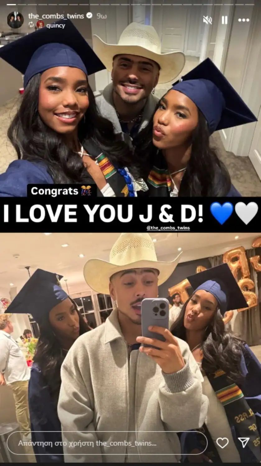 Ο 27χρονος αδελφός τους, Christian Combs, τίμησε επίσης το ακαδημαϊκό τους επίτευγμα δημοσιεύοντας ένα βίντεο από την εκδήλωση.