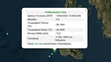 Σύμφωνα με το Γεωδυναμικό Ινστιτούτο του Εθνικού Αστεροσκοπείου Αθηνών, ο σεισμός των 3,2 R στην Κεφαλονιά προέρχεται από τον εστιακό χώρο που βρίσκεται σε απόσταση 6 χιλιομέτρων δυτικά – βορειοδυτικά της Άσσου.
