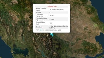 - Το εστιακό βάθος του σεισμού, σύμφωνα με την εκτίμηση του Γεωδυναμικού, υπολογίζεται στα 13,4 χλμ.