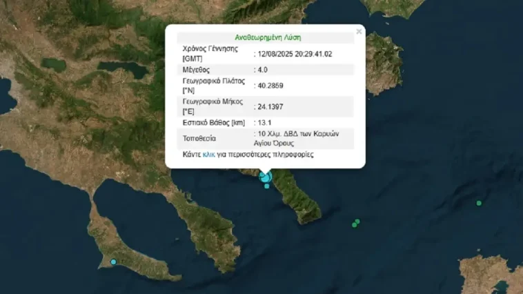 Σεισμός μεγέθους 4 Ρίχτερ εκδηλώθηκε στο Άγιο Όρος.