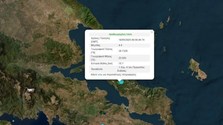 Σεισμός 4,4 Ρίχτερ σημειώθηκε στην Εύβοια λίγο πριν τις 10 το πρωί της Κυριακής (18.05.25).
