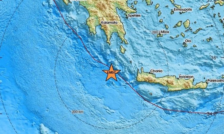 Το ακριβές επίκεντρο τη δόνησης εντοπίζεται στα 89 χλμ. νοτιοδυτικά των Αντικυθήρων.