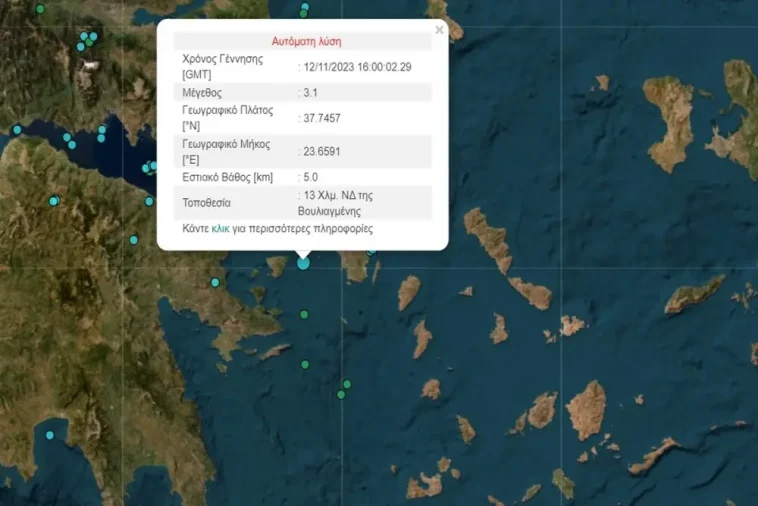 Σεισμός εντάσεως 3,2 βαθμών της κλίμακας Ρίχτερ καταγράφηκε στις 18:00 στη Βουλιαγμένη
