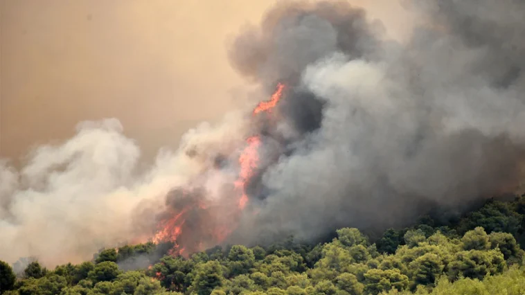 - Σύμφωνα με ενημέρωση της Πυροσβεστικής, η φωτιά καίει αγροτοδασική περιοχή.
