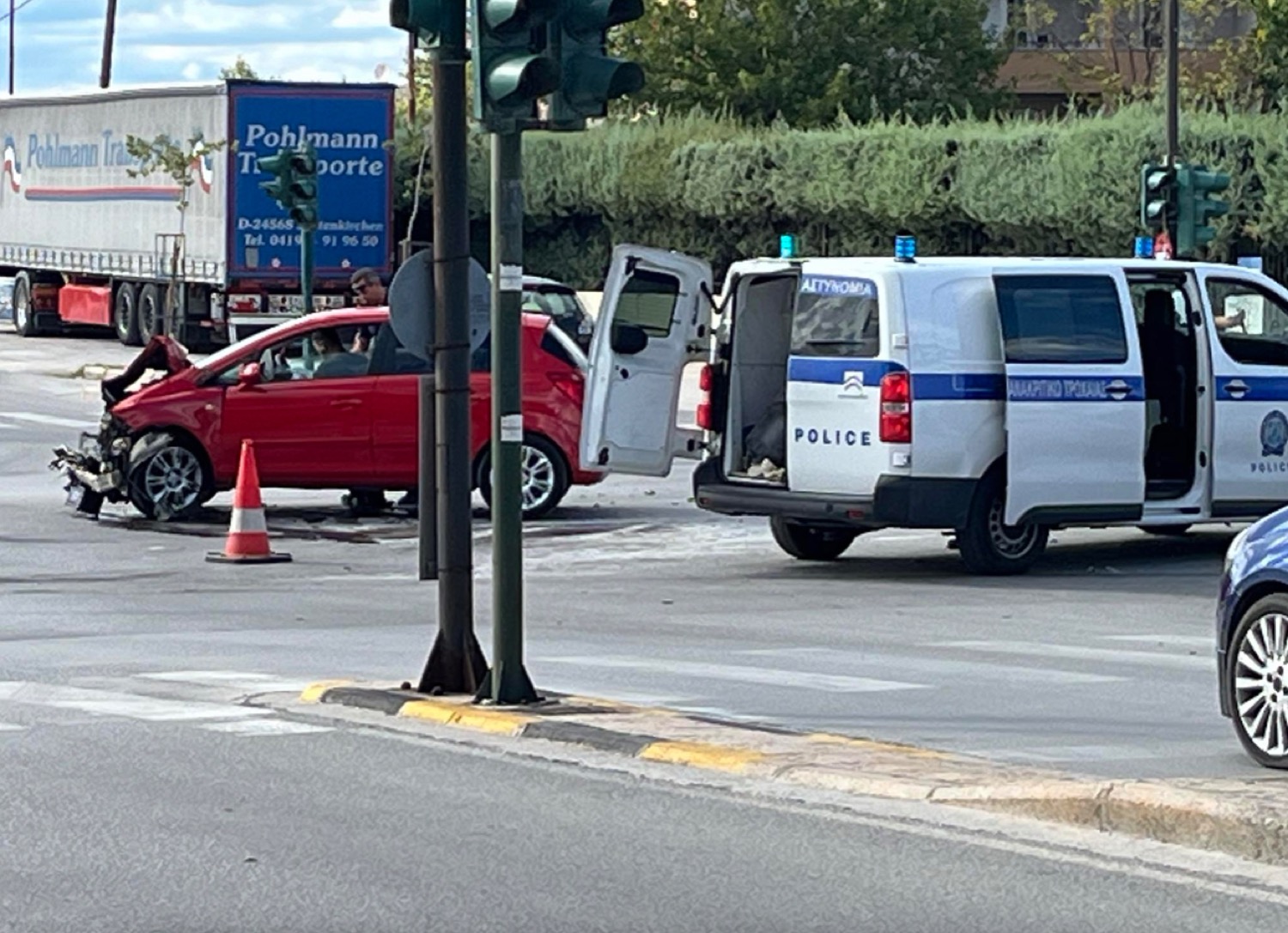 - Ειδικότερα και κατά τις πληροφορίες του onlarissa, το συμβάν καταγράφηκε λίγο μετά τις 4 το απόγευμα, όταν, υπό αδιευκρίνιστες συνθήκες ένα Ι.Χ. αυτοκίνητο συγκρούστηκε με στρατιωτικό όχημα στην οδό Σαρίμβεη, με αποτέλεσμα να τραυματιστούν ελαφρώς οι δύο άτομα, ενώ σοβαρές υλικές ζημιές καταγράφηκαν στα οχήματά τους.